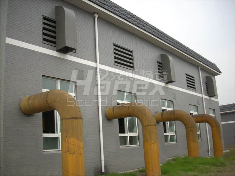 富陽市靈橋綜合污水處理廠工程師富陽市江南片的三個集中污水處理廠之一,中占地面積15.58公頃。廠內安裝了4臺功率為315KW的羅茨鼓風機,運行時車間高噪聲值達107.14dB(A),廠界噪聲超標4-5dB(A),經漢克斯隔音治理后,車間及廠界噪聲均控制在規定范圍內。