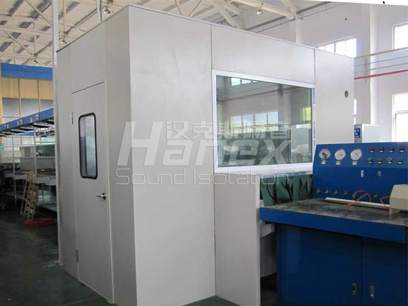 根據這個目標值確定隔聲材料和結構形式,根據一般的經驗和工程制造工藝,單層隔聲罩板的插入損失一般可以達到30-40dB(A),因此,一般單層隔聲房形式即可達到30dB(A)的設計指標。